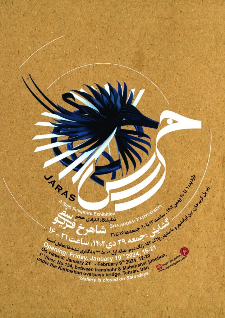 این دغدغه سالیان بسیار است که ذهن امیرشاهرخ فریوسفی را هم به خود مشغول داشته، خاصه در طی سالیانِ دست و پنجه نرم کردنش با »شاخو«ها. شاخو، این موجودیت پرّان که بال در هوا دارد و شناور در باد است؛ جان است، استعاره است، ماهیتش تعلیق و بیماهیتی اوست! اما همچنان که بالی در باد، نفْس، دَمِش و نفحه دارد، پایی هم دارد در زمین. انکسار حروف در شاخو بازتاب جنبهی زبانی اوست، اما بالها نشان از نسبتش با باد و جان و هوا دارد و اشارتی به غیرزبانی بودن و منشاء آن در گردش افلاک. حالا »جرس«، منتشی باد و نَفَسی است که بالهای شاخو در آن جان میگیرد. شاید همان حلقهی گمشده!