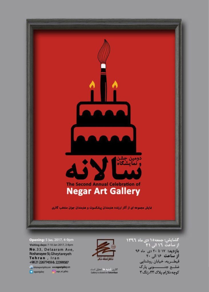 در برگزاری جشنِ سالگردِ تاسیس گالری نیز که به نوعی بزرگترین اتفاقِ سالانهی این مجموعه هست، همانطور که ملاحظه میفرمائید، هر سال مجموعهیی از آثار هنرمندان پیشکسوت را در کنارِ هنرمندانِ جوان به نمایش میگذاریم.