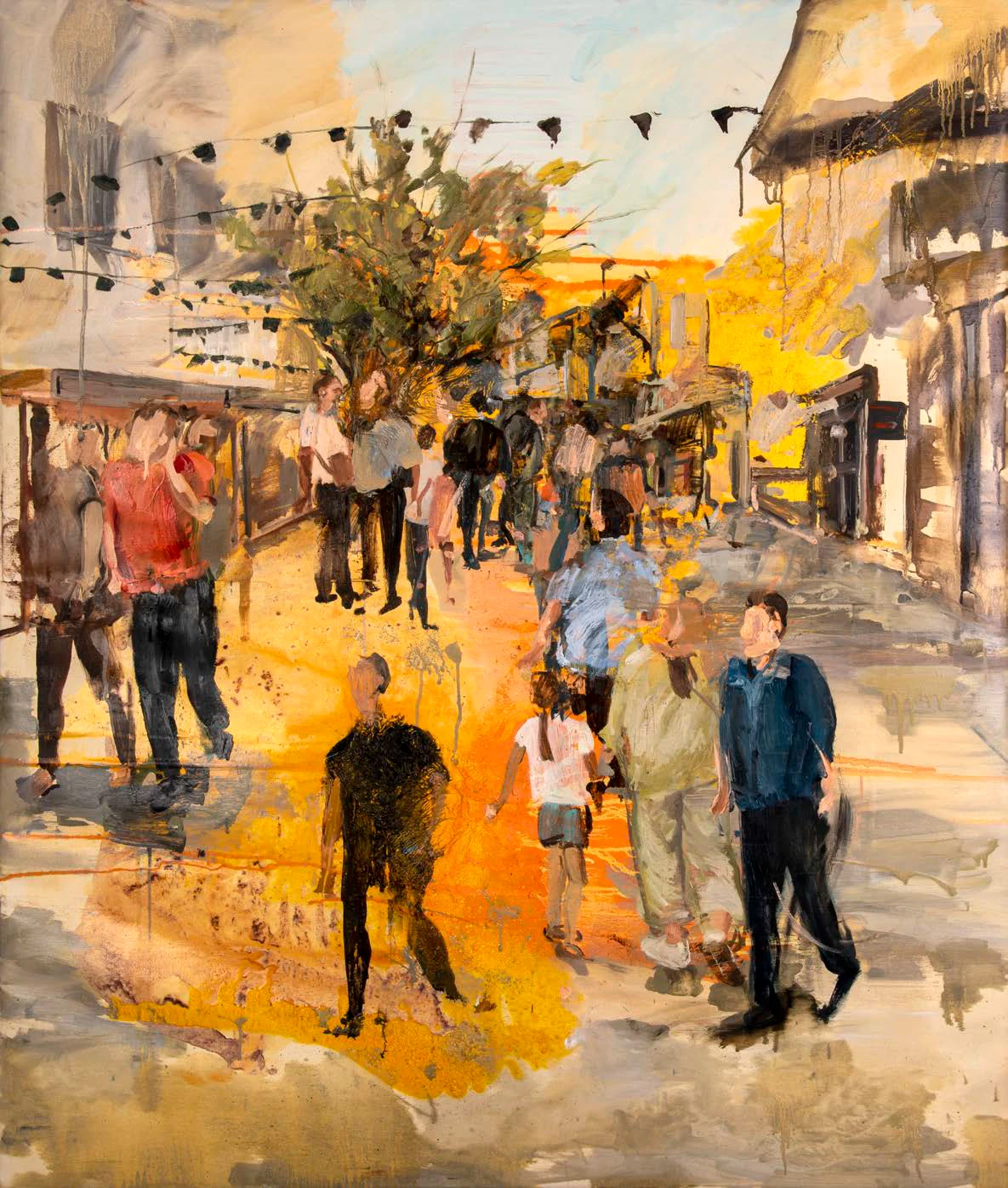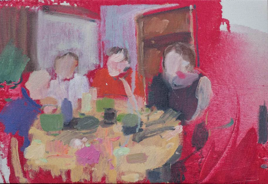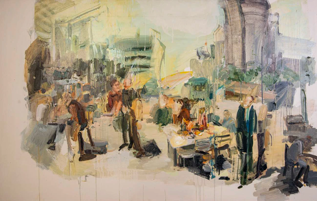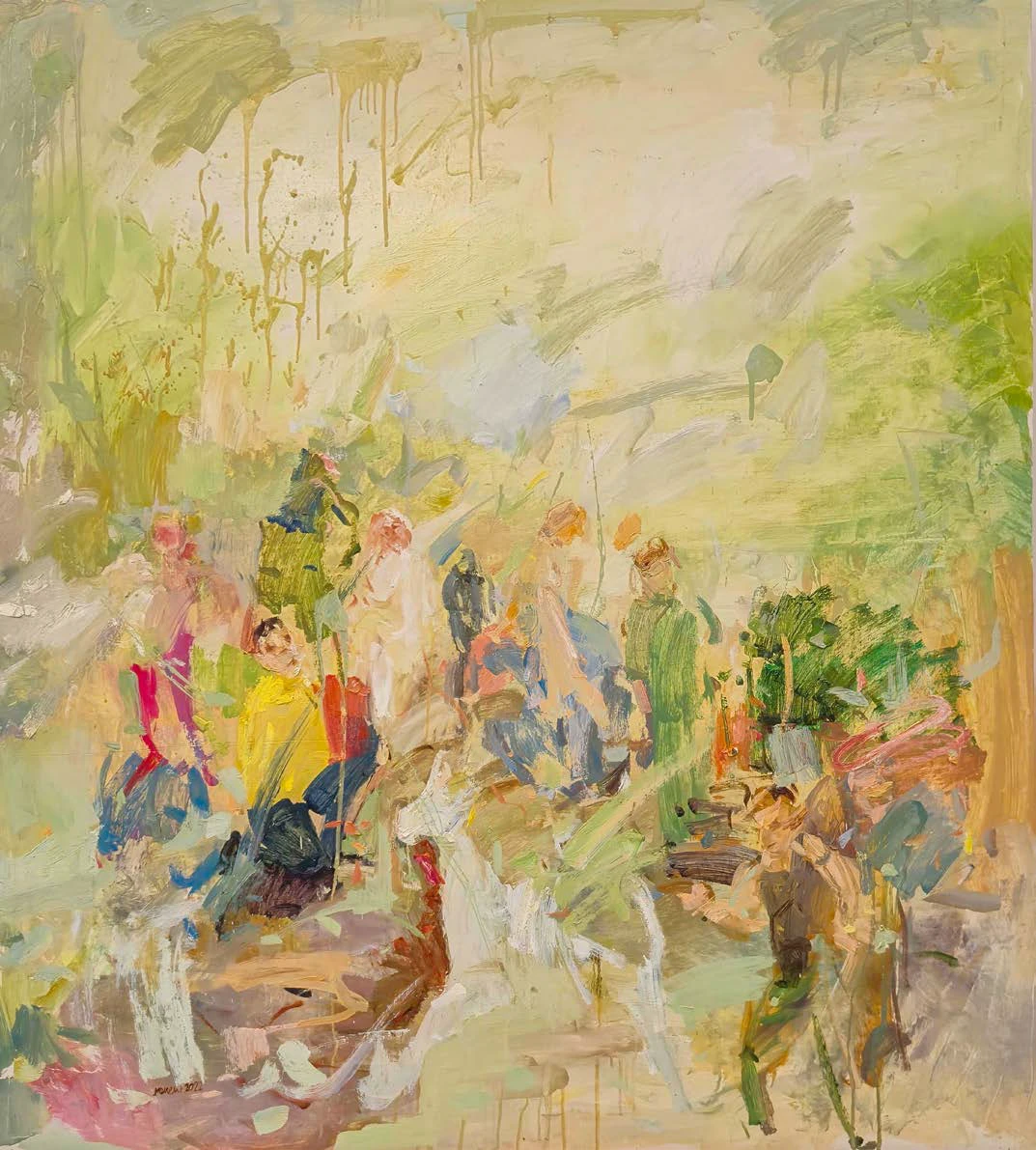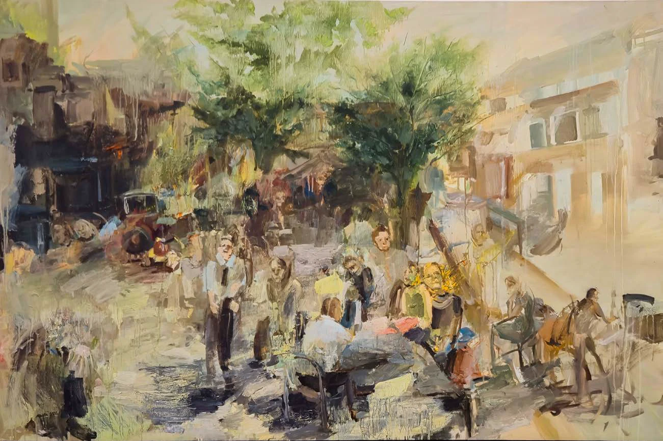 در منطقه خاکستری صلح و جنگ بی معناست، اینجا مکان بی طرف است، مکان مشاهده و عبور. چهره ها در مه زرینی فرو می روند و فضا در اعوجاج واقعگرایی، ایستایی خود را از دست میدهد. حتی رنگها نیز گم و پیدا می شوند و حضور و غیابشان تردید نقاش را برای باور کردن آنچه می بیند نشان میدهد. او در گوشه ای می ایستد و قلم اش را می لغزاند میان دلبستگی یا فرار از میان آنچه پیش رویش قرار گرفته تا آن لحظه خوشی گذرا را در ابدیت رها کند.