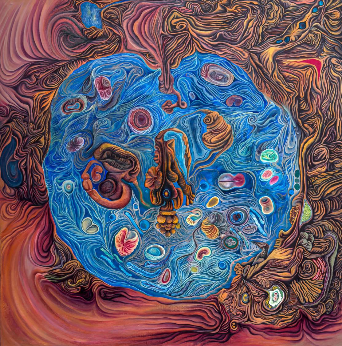 Hidden forces attempt to restrain this flow, yet life, through its intricate entanglements, finds a way to recreate itself.